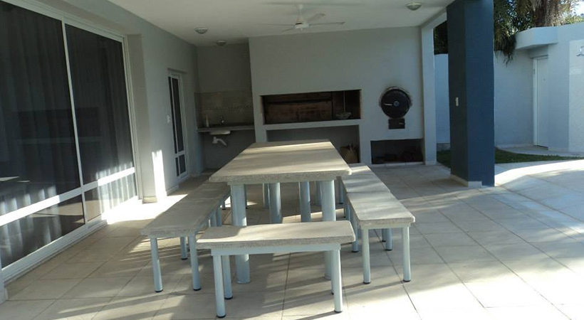 Dispone de una amplia galeria con una mesa y bancos, con una parrilla y horno a leña.